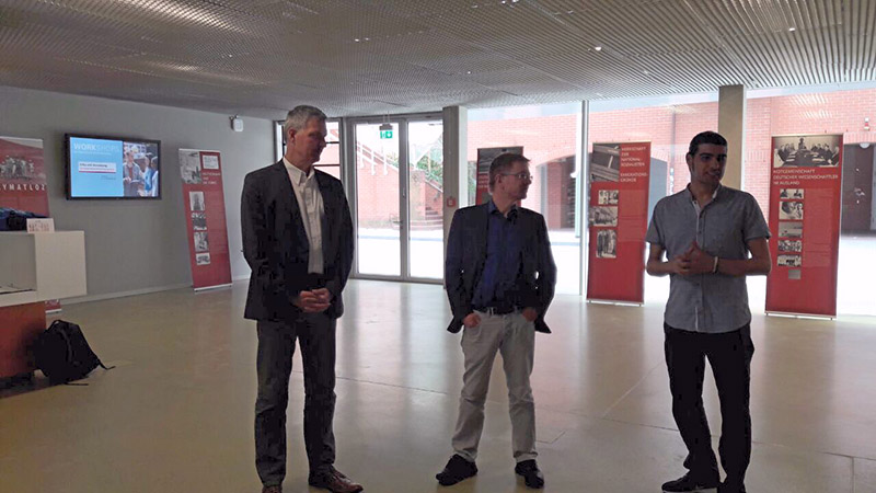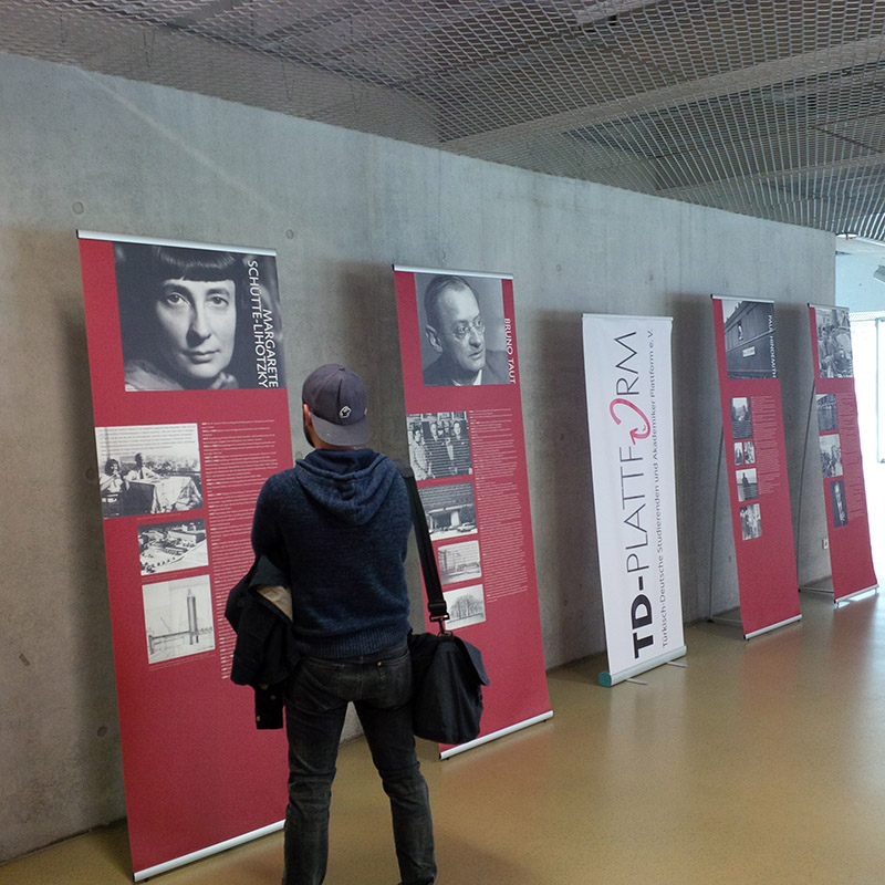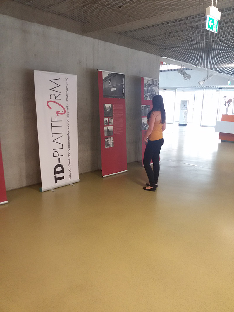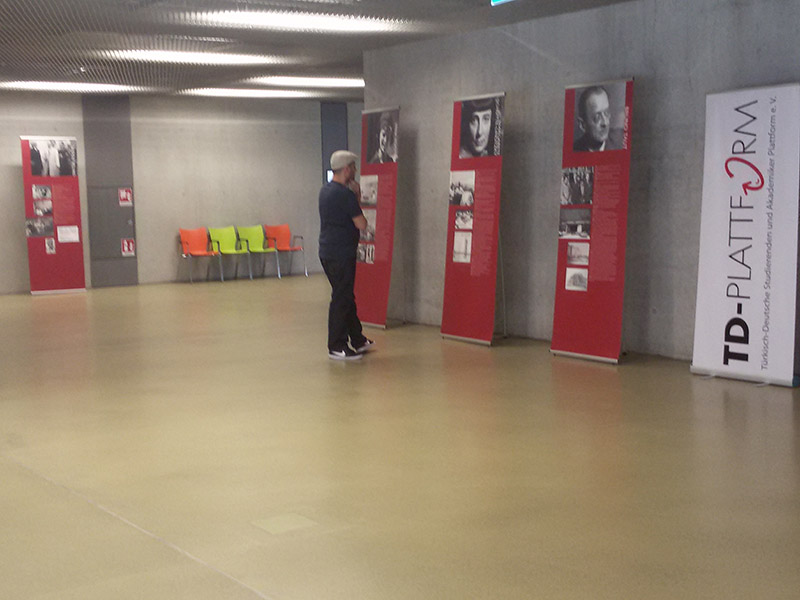 Die offizielle Ausstellungseröffnung im Foyer des neuen Campus Center am 11.07.2016 um 17 Uhr erfolgte durch den Vizepräsidenten der Universität Kassel Prof. Dr. Andreas Hänlein mit einer kurzen Rede. Hierbei wurde deutlich, dass der Vizepräsident zum Einen selbst die Ausstellung bereits 1998 in Istanbul gesehen hatte und zum Anderen er sehr erfreut war, die Wanderausstellung nun an der Universität Kassel vorzufinden. Als weiterer Redner fungierte Türkei-Experte Prof. Dr. Wolfgang Gieler, der ebenfalls die Wanderausstellung 2008 in Bremen betrachten konnte. Er freute sich enorm, dass solch eine wichtige Thematik seitens einer deutschen Universität gestattet wird und die Räumlichkeiten zur Verfügung gestellt werden, da, so Gieler, dieses nicht immer selbstverständlich ist. Fatih Kisacik, TD-Plattform Vorstandsmitglied und Geschichtsdoktorand mit dem Dissertationsthema „Zur Rückkehr deutscher Wissenschaftler aus dem Exil Türkei“. Die türkischen Professoren und die Entwicklung Deutschlands nach 1945[1].“, der als Initiator der Wanderausstellung für Kassel diente, freute sich ebenfalls über die Besucher und die Kooperation der Universität Kassel um das nach wie vor kaum bekannte Thema „Exil Türkei“ einer breiteren Öffentlichkeit bekannt zu machen.